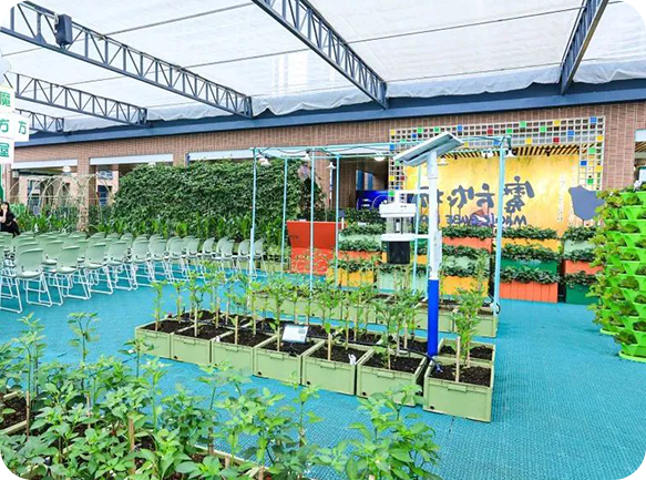 針對校園光照條件、排水系統(tǒng)、屋頂承重等進行全面評估,根據空間的特點和農作物的生長需求,進行科學規(guī)劃、精細設計達到高效空間利用。
